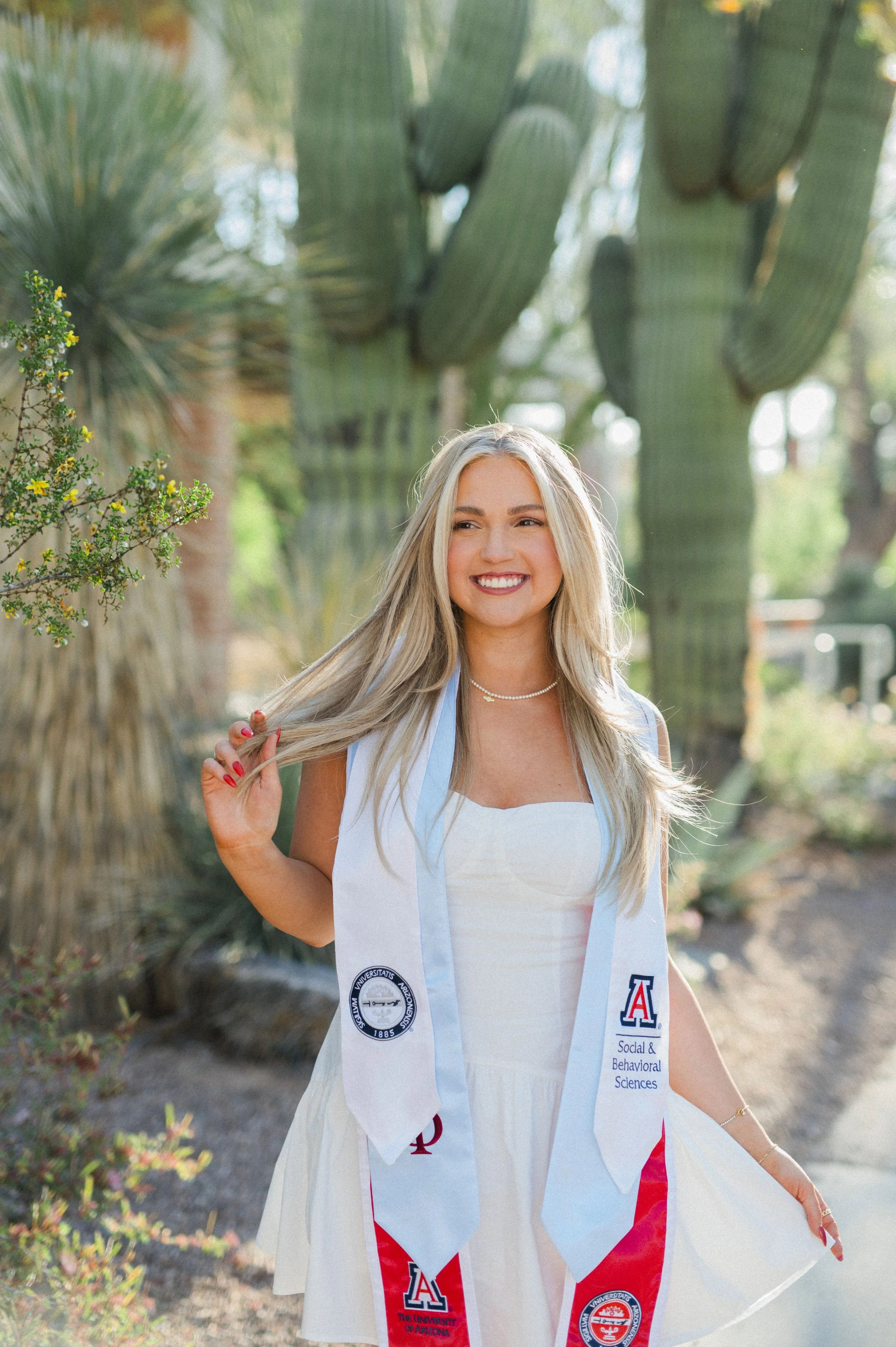 I’m so happy you are here! As a 2021 graduate from the University of Arizona, my favorite time of year is coming back to Tucson to celebrate all of the amazing graduates I have the honor to work with! After photographing over 300 sessions at the University of Arizona, I have the expertise to create a grad session with you that highlights your accomplishments and the best spots on campus. I will launch Fall 2025 dates in August and Spring 2026 dates in November and they fill up fast so reach out via my contact form to get on my Early Bird list to receive the first selection of dates.